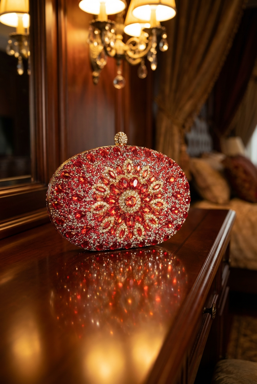 Glamorize your outfit with our DAWN rhinestone clutch.